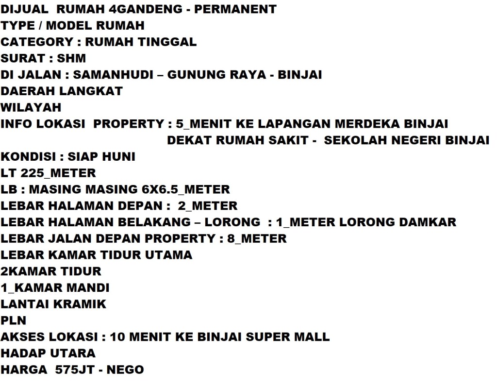 575JT – RUMAH 4GANDENG JUAL – JALAN GUNUNG RAYA – SAMANHUDI – BINJAI – LANGKAT Diposkan oleh: VAN OTO PROPERTY on 14 Juni 202017 September 2020 LT 225_METER_– 6X6.5 – MASING MASING 2KAMAR TIDUR – SIAP HUNI – HADAP UTARA – SHM tanyakan property ini – CHAT WHATSAPP CONTACT AGENT NAVIGASI MAPS – SURVEY LOKASI beranda home menu Bagikan ini: Klik untuk berbagi di X(Membuka di jendela yang baru) X Klik untuk membagikan di Facebook(Membuka di jendela yang baru) Facebook Suka Memuat... Terkait